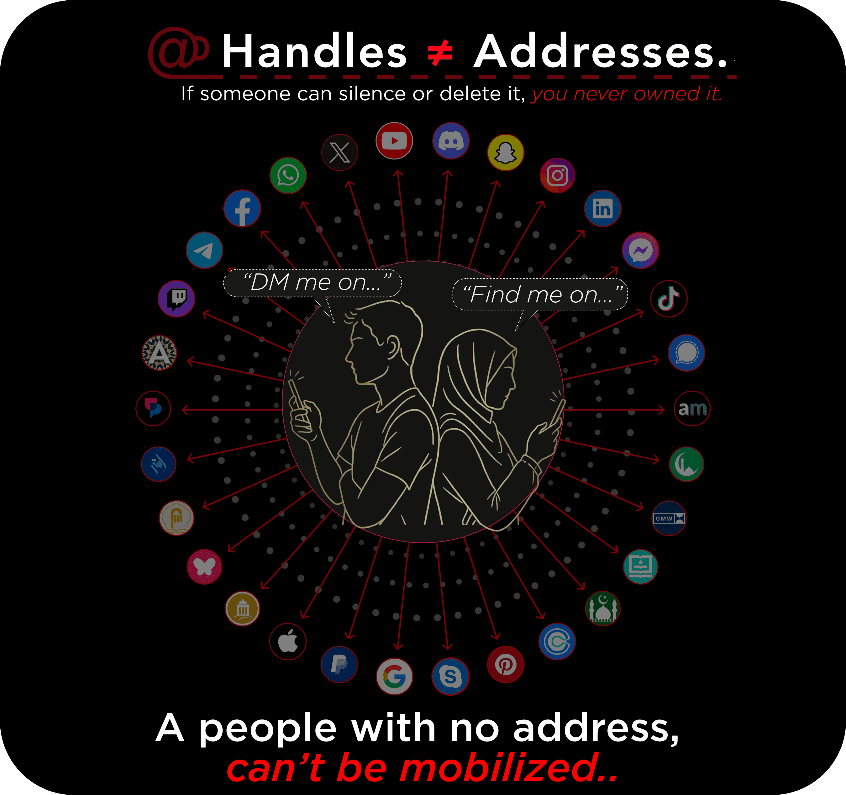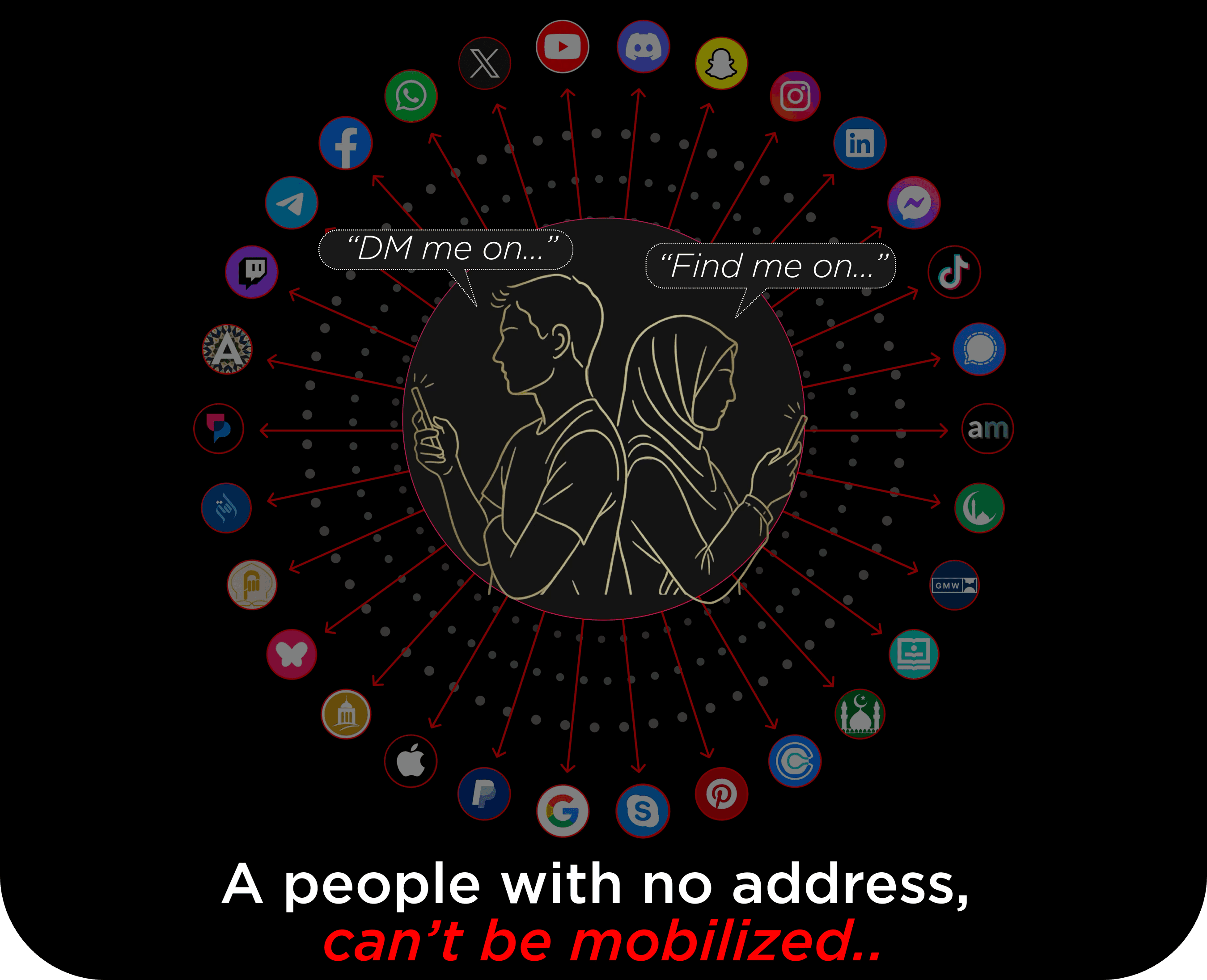 We are present across every platform, app, and network, but without a shared digital address of our own, we remain scattered across systems that profit from our presence, reinforce our fragmentation, and make it nearly impossible to connect or mobilize as one Ummah.