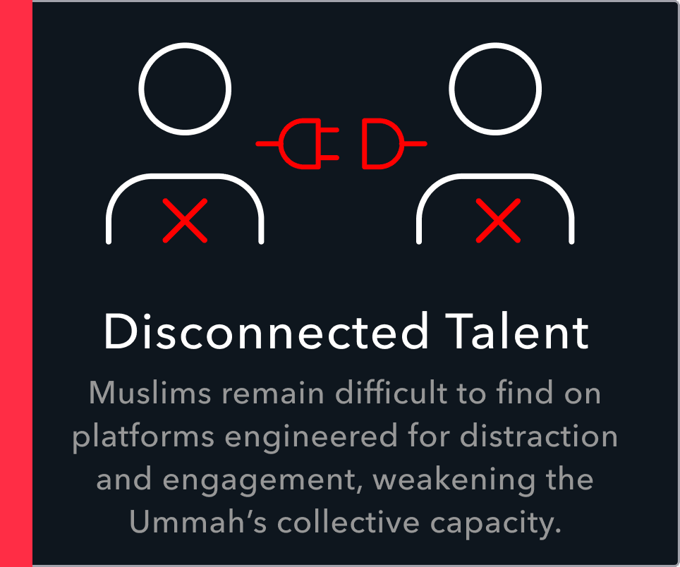 We’re building the first Waqf-powered digital infrastructure designed to help Muslims discover each other, coordinate their efforts, and circulate wealth, talent, and opportunity across the Ummah.